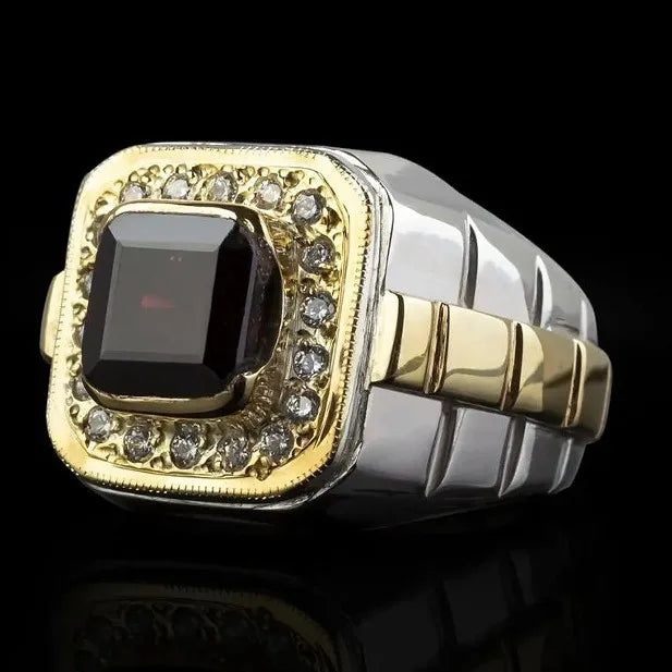 Classical Fashion Gold Silver Color Men Rings Square Round Women Black White Stone Rings Jewelry Party Gift
