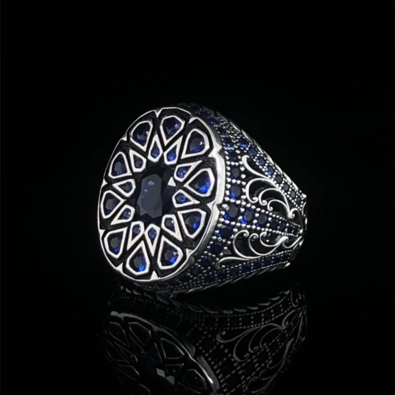 Delicate Inlaid with Blue Stone Silver Color Round Ring Fashion Party Men Rings Jewelry