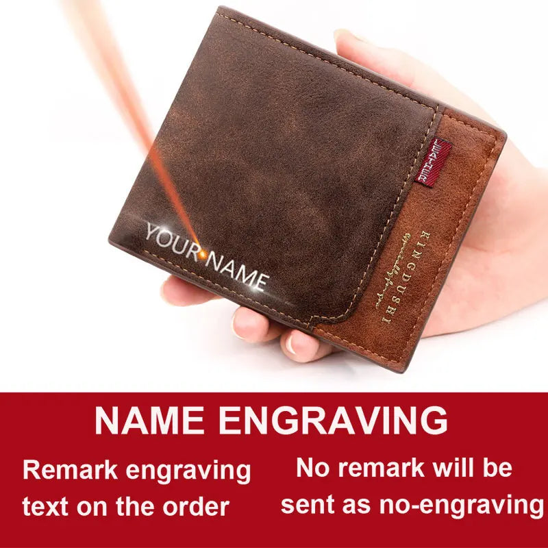 Free Name Engraving New Men Short Wallets High Quality Classic Card Holder Simple Male Purse Zipper Coin Pocket Men Money Clips